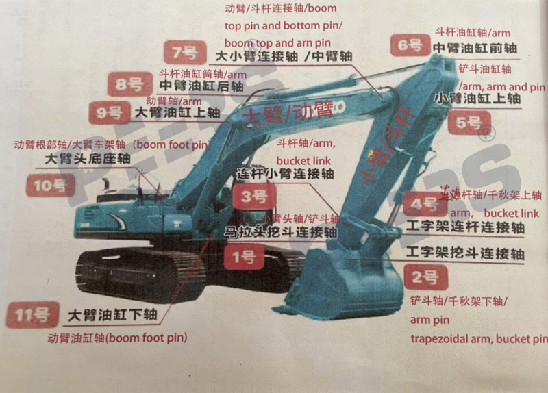 2.1 bucket pins position as below showings for excavator and digger